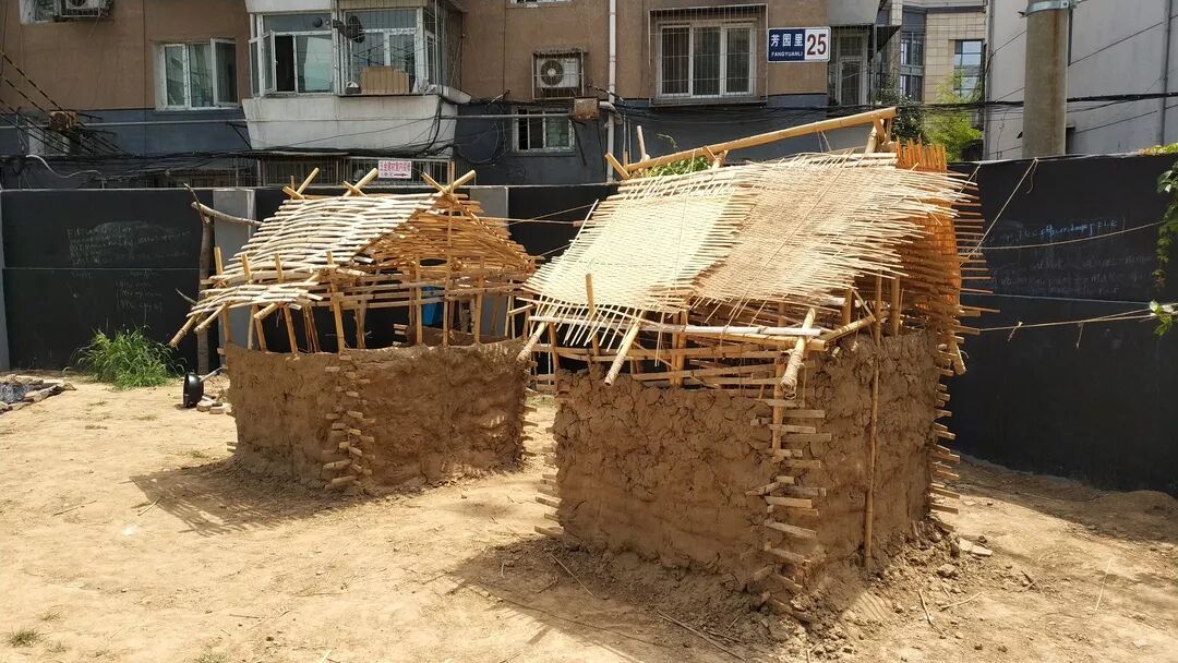 这是个回忆起来都会笑出声的过程:一群小不点,和他们不会讲中文(装的)的英文老师,烈日下连猜带比划地表达着自己的需求,共同设计造型,挖泥,抬水,立竹子搭架子,捆绳子加固,用泥巴糊墙。