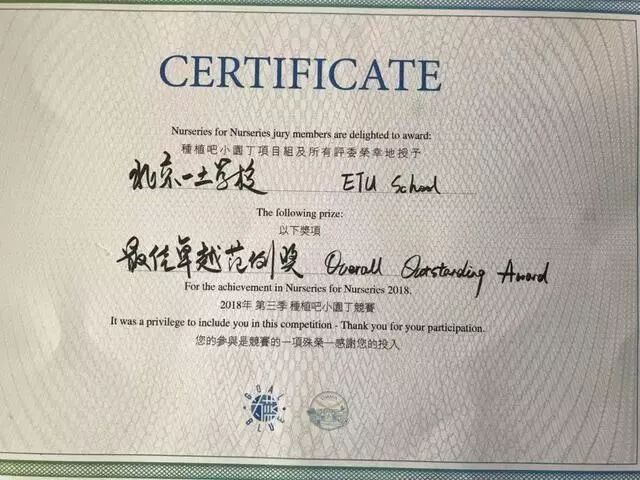 另外,小小骄傲的是,我们的项目也参与了法国大使馆在北京的幼儿园和小学提倡的一个校园蔬菜种植友谊竞赛。在今年第三季的“种植吧,小园丁”活动中,“小土豆”们喜气洋洋地代表一土学校把“最佳卓越范例奖”领回了家。